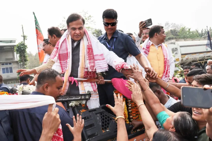 असम चुनाव 2026: बारिश में भी नहीं रुका जोश, हिमंत बिस्वा सरमा के रोड शो में उमड़ा जनसैलाब