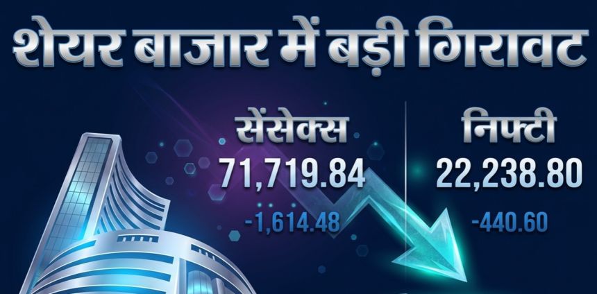 Breaking: शेयर बाजार में भारी गिरावट! सेंसेक्स 1400 अंक टूटा, निफ्टी 22250 के नीचे